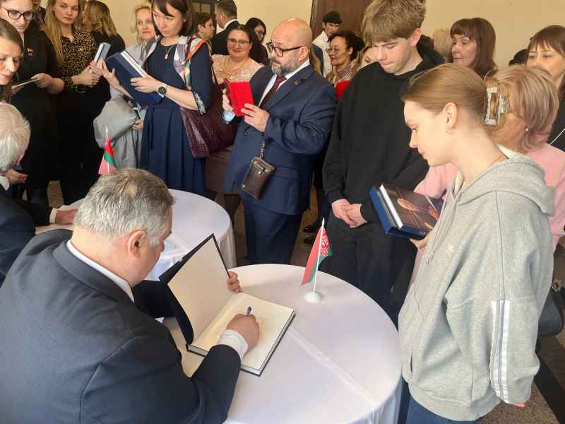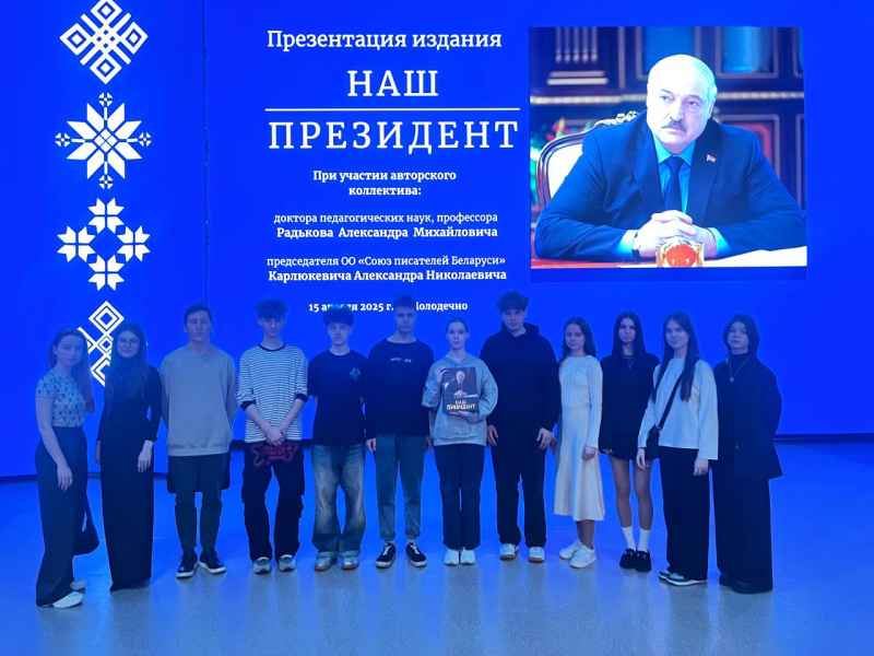 15.04.2025 учащиеся и педагоги УО «Молодечненский государственный музыкальный колледж им. М.К.Огинского» посетили презентацию издания «Наш президент», которая состоялась во Дворце культуры г.Молодечно при участии представителей авторского коллектива: доктора педагогических наук, профессора Радькова Александра Михайловича, председателя ОО «Союз писателей Беларуси» Карлюкевича Александра Николаевича. Книга, первое в Беларуси документально-биографическое издание такого масштаба, рассказывает о жизни и деятельности Александра Григорьевича Лукашенко.