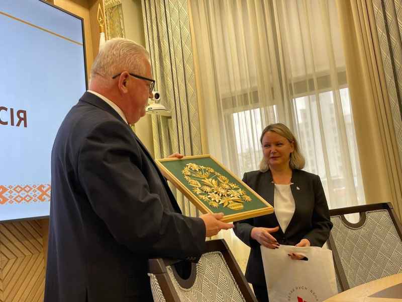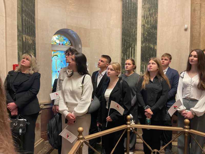 30 октября учащиеся нашего колледжа Маскаленчик Артем и Чернышев Артем совместно с РОО "Белая Русь" 🇧🇾 и председателем Ириной Поцелуевой посетили с экскурсией Центральную избирательную комиссию Республики Беларусь, где встретились с председателем ЦИК Игорем Карпенко. На встрече обсуждались вопросы государственной политики и общественно-политической обстановки в нашей стране. Председатель ЦИК рассказал о функционировании избирательной системы Беларуси и применяемых мерах электорального суверенитета. В ходе диалога собравшиеся в зале учащиеся, не упустили возможность задать Игорю Карпенко интересующие вопросы. Председателю ЦИК был вручен памятный сувенир от лица учащихся отделения "Декоративно-прикладное искусство". Также в ходе экскурсии ребята посетили Национальный мемориальный комплекс Храм-памятник в честь всех Святых и в память Отечеству нашему послуживших. Поездка была очень интересной и познавательной.