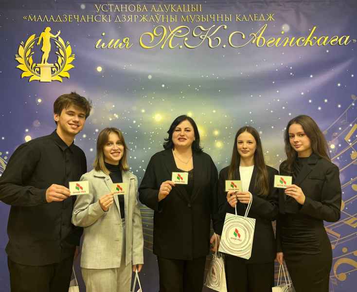14.11.2025 в УО «Молодечненский государственный музыкальный колледж им.М.К. Огинского» состоялось торжественное районное мероприятие. В концертном зале колледжа собрались почетные гости, ветераны, активисты и представители различных организаций Молодечненского района. В торжественной обстановке М.Н. Щигло, председатель областной организации «Белая Русь» и Поцелуева И.В., председатель районной организации «Белая Русь» вручили членские билеты учащимся нашего колледжа, которые достигли 18-летнего возраста, Рауба Дарье, Корсак Марии, Ставрову Артему и Медведской Наталье. Ряды организации пополнились и новыми членами в лице директора колледжа Венгерской Вероники Петровны и преподавателя Корсак Ольги Григорьевны. От души поздравляем!