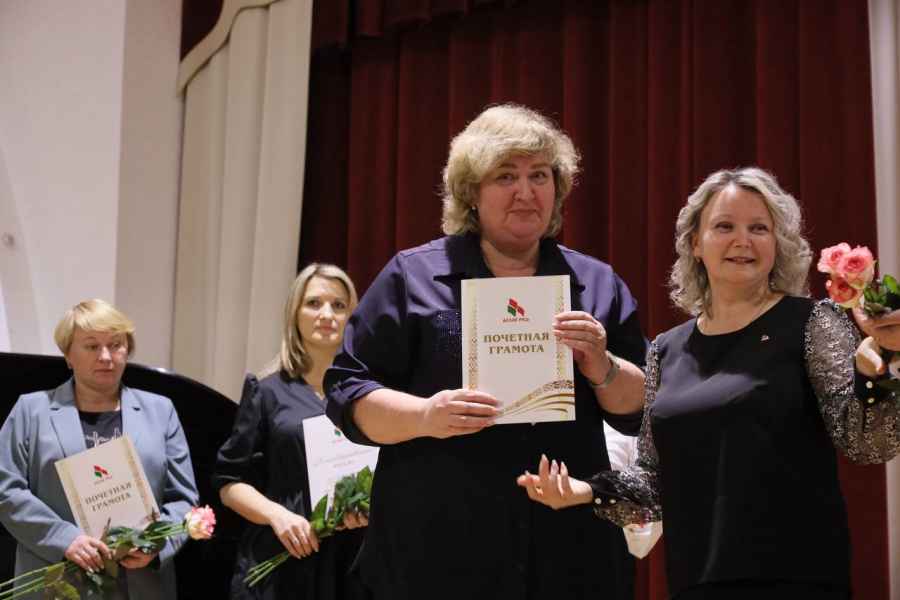 Для гостей мероприятия был подготовлен концерт, в котором приняли участие наши ребята. Председатель ПО РО «Белая Русь» музыкального колледжа Гончарова И.И, была награждена Почетной грамотой от Молодечненской районной организации за добросовестный труд по формированию положительного имиджа общественного объединения, проявленную инициативность и высокую гражданскую позицию. «Белая Русь» является движением от народа и этот праздничный день лишь подтвердил то, что сила объединения в его искренности и единстве.