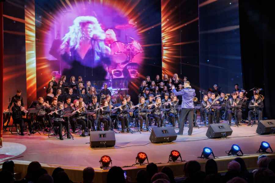 Духовой оркестр Молодечненского государственного музыкального колледжа им. М.К. Огинского под управлением Алексея Андреева выступил во Дворце культуры города Молодечно с новой программой "Мировые хиты". В рамках концерта звучали знаменитые песни от таких групп как Deep Purple, АВВА, The Rolling Stones, Queen, Scorpions, Bon Jovi и AC/DC в исполнении духового оркестра, солистов и молодёжного хора «ForTe» под руководством Ольги Сороко. Обновлённые версии известных хитов вызвали восторг среди публики: зрители активно подпевали, танцевали и наслаждались звучанием живой музыки.