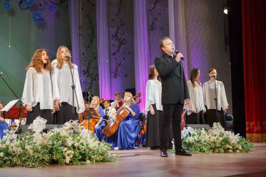 Представители Республиканского Общественного Объединения "Белая Русь" преподнесли цветы Заслуженному коллективу Республики Беларусь симфоническому оркестру Молодечненского государственного музыкального колледжа им.М.К.Огинского под руководством Сороко Г.С. и солистам в знак благодарности за прекрасный концерт, который прошел во Дворце культуры города Молодечно.