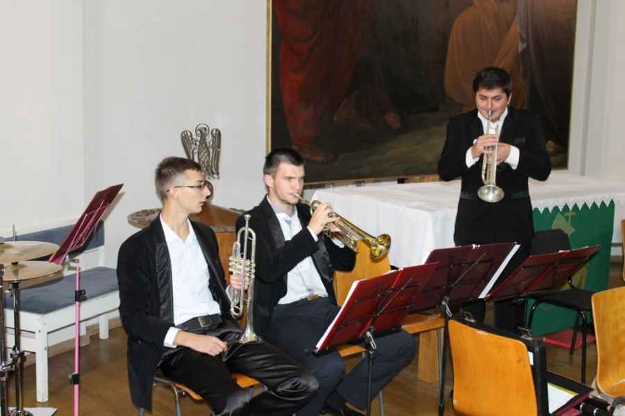 Канцэрт складаўся з двух аддзяленняў. На сцэне выступалі ў тым ліку вядомыя выпускнікі музычнага каледжа — лаўрэаты міжнародных конкурсаў Андрэй Саўчанка і Андрэй Мацюшонак. Акрамя таго, Беларускі сімфанічны аркестр каледжа выступіў разам з піцерскім выканаўцам Аляксандрам Пахмутавым. Таксама аркестру атрымалася пасупрацоўнічаць з лаўрэатам міжнародных конкурсаў — моладзевым хорам Санкт-Пецярбурга “Ронда”, з якімі зроблены аркестроўкі, аранжыроўкі. Першае аддзяленне скончылася песняй “Свята Перамогі”, аўтарам якой з’яўляецца наш зямляк з Вілейшчыны Леанід Левашкевіч, які зараз кіруе “Творчай садружнасцю “Маэстра” у Санкт-Пецярбургу. А ў другім аддзяленні ў фінале прагучала вядомая песня кампазітара Давіда Тухманава і паэта Уладзіміра Харытонава “Дзень Перамогі”.