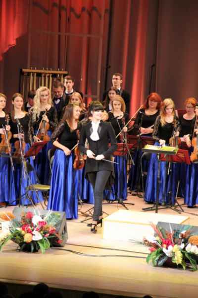 Першай да аркестра выйшла студэнтка Беларускай дзяржаўнай акадэміі музыкі Валерыя Рыбінская. З гэтай таленавітай дзяўчынай многія ўжо добра знаёмыя. Яе дэбют у якасці дырыжора адбыўся два гады таму, на канцэрце “Вечар паланэзаў” у музычным каледжы, дзе ўвазе слухачоў яна разам з сімфанічным аркестрам прадставіла аркестраваныя паланэзы Міхала Клеафаса Агінскага. На гэтым канцэрце пад яе кіраўніцтвам калектыў выканаў уверцюру “Эгмант” з музыкі да трагедыі Гётэ Людвіга вана Бетховена.