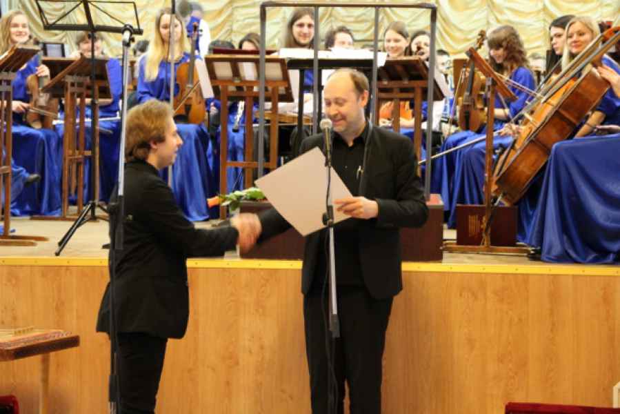 В перерыве между отделениями концерта слово было предоставлено Заслуженному деятелю культуры Российской Федерации, секретарю правления Союза композиторов России, председателю МолОта Союза композиторов России и международной гильдии «MolOtinternationalgroup», композитору и виолончелисту Ярославу Судзиловскому, который также наградил участников II международного композиторского форума Творческих мастерских МолОта имени М.К.Огинского почетными грамотами.