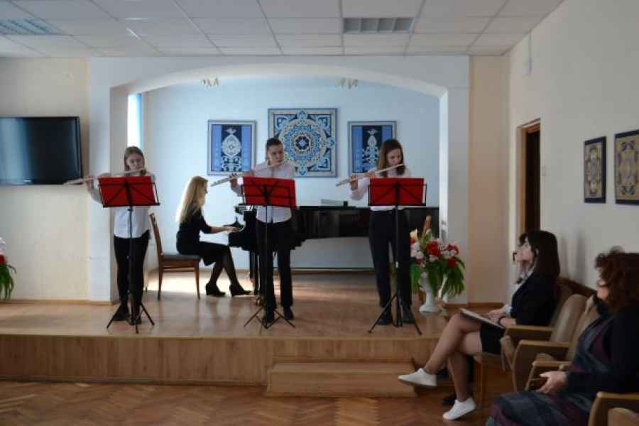 Грамотами за лучшее выполнение теста по музыкальной грамоте были отмечены Жук Александра (ГУО «Олехновичская ДШИ», учитель Ковалевская Ю.А.), Андык Мария (ГУО «Марьиногорская ДШИ, учитель Сикорская Т.А.), Матусевич Мария (ГУО «Марьиногорская ДШИ», учитель Моцук-Паршина И.М.), Преснякова Анастасия (ГУО «Вилейская ДШИ», учитель Рожко С.Н.), Глод Татьяна (ГУО «Лебедевская ДШИ», учитель Софьина М.М.), Мацкевич Варвара (ГУО «Ратомская ДШИ», учитель Басович Ю.А.). Грамоты за лучшее выполнение задания по слуховому анализу получили Грицков Артём (ГУО «Радошковичская ДШИ», учитель Мишина В.Ю.), Валай Матвей (ГУО «Молодечненская ДШИ», учитель Богданович Н.Е.). За лучшую работу по музыкальной литературе была отмечена грамотой Жаромская Варвара (ГУО «Марьиногорская ДШИ, учитель Беглюк В.С.). Все участники олимпиады получили сладкие призы, а дипломантам первой степени вручили в подарок вытинанки, сделанные мастерами нашего колледжа отделения «Декоративно-прикладное искусство». Все преподаватели, подготовившие учеников к олимпиаде, были отмечены Благодарностями, а также могли поучаствовать в круглом столе на тему «Современные проблемы преподавания музыкально-теоретических дисциплин». До церемонии награждения участники олимпиады и гости поприсутствовали на концерте, который подготовили учащиеся колледжа и сектора практики.