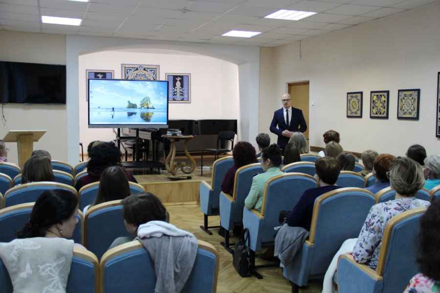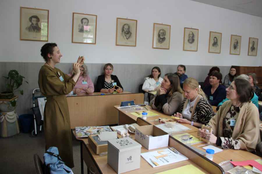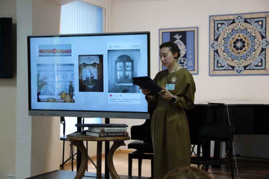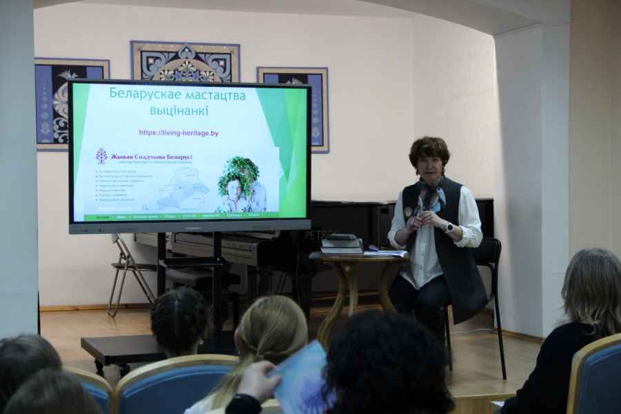 На пачатку мерапрыемства вядучы спецыяліст аддзела інфармацыйна-аналітычнага забеспячэння дадатковай адукацыі дарослых Інстытута павышэння кваліфікацыі і перападрыхтоўкі кадраў установы адукацыі “Беларускі дзяржаўны ўніверсітэт культуры і мастацтваў”Алена Гумінская выступіла з прэзентацыяй пра беларускае мастацтва выцінанкі. Яна падрабязна расказала пра доўгі і крапатлівы працэс падрыхтоўкі інфармацыі і дакументаў для ўключэння традыцыйнага мастацтва выразання з паперы ў Рэпрэзентатыўны спіс нематэрыяльнай культурнай спадчыны ЮНЕСКА, якое адбылося ў снежні 2024 года.