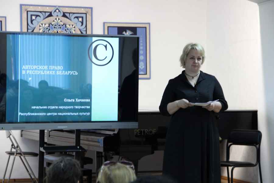 Начальнік аддзела народнай творчасці дзяржаўнай установы культуры змешанага тыпу “Рэспубліканскі цэнтр нацыянальных культур”, загадчык секцыі выцінанкі Беларускага саюза майстроў народнай творчасці, член экспертнай камісіі па народных мастацкіх рамёствах пры Міністэрстве культуры Рэспублікі Беларусь Вольга Хачкова выступіла з вельмі змястоўным дакладам “Аб’екты аўтарскага права ў Рэспубліцы Беларусь”. Сёння тэма плагіяту ў выцінанцы стаіць вельмі востра, таму было шмат пытанняў, удакладненняў і абмеркаванняў.