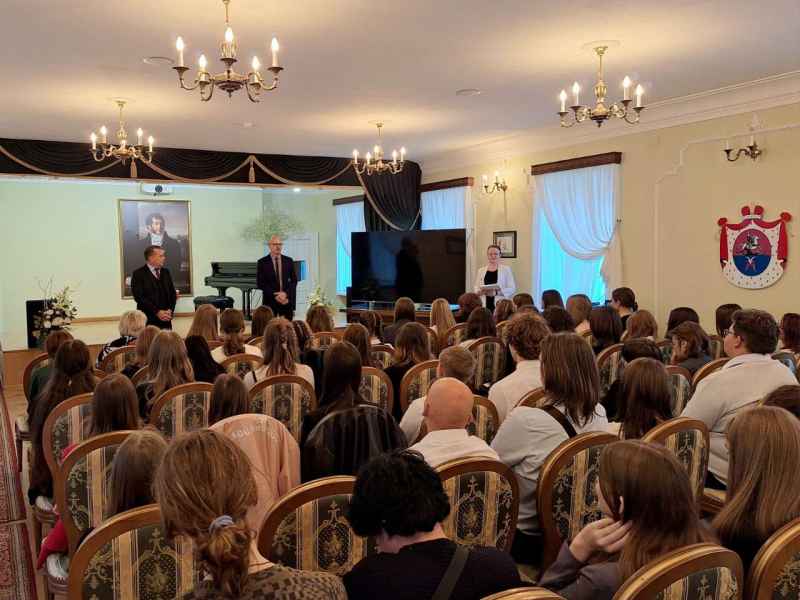 В преддверии дня рождения Михала Клеофаса Огинского 24 сентября в музее-усадьбе М.К.Огинского в Залесье состоялось торжественное вручение билетов учащихся первокурсникам УО "Молодечненский государственный музыкальный колледж им. М.К.Огинского". Для учащихся и кураторов учебных групп была проведена театрализованная экскурсия по залам усадьбы, где участники познакомились с жизнью и деятельностью талантливого композитора и общественного деятеля Михала Клеофаса Огинского. После экскурсии в уютной атмосфере концертного зала усадьбы состоялась торжественная церемония вручения с администрацией УО «Молодечненский государственный музыкальный колледж им. М.К.Огинского» Апановичем Р.И., Артемёнком Д.В. и Кохан О.А.