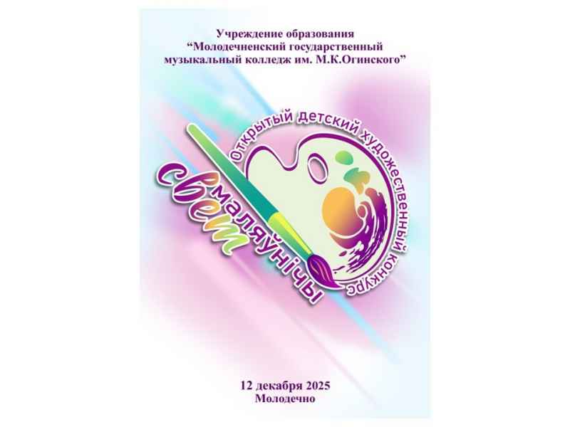 Учреждение образования «Молодечненский государственный музыкальный колледж им.М.К.Огинского» сообщает о проведении 12 декабря 2025 года на базе колледжа ІІ Открытого детского художественного конкурса «Маляўнічы свет» для учащихся детских художественных школ, школ искусств, учреждений дополнительного образования, студий изобразительного искусства. С положением о порядке организации и проведения конкурса можно ознакомиться на сайте колледжа molmk.by.