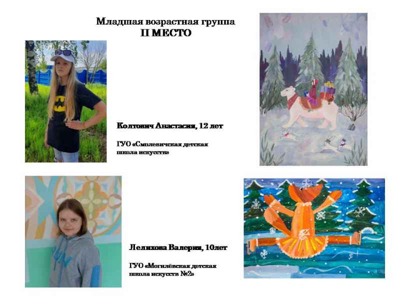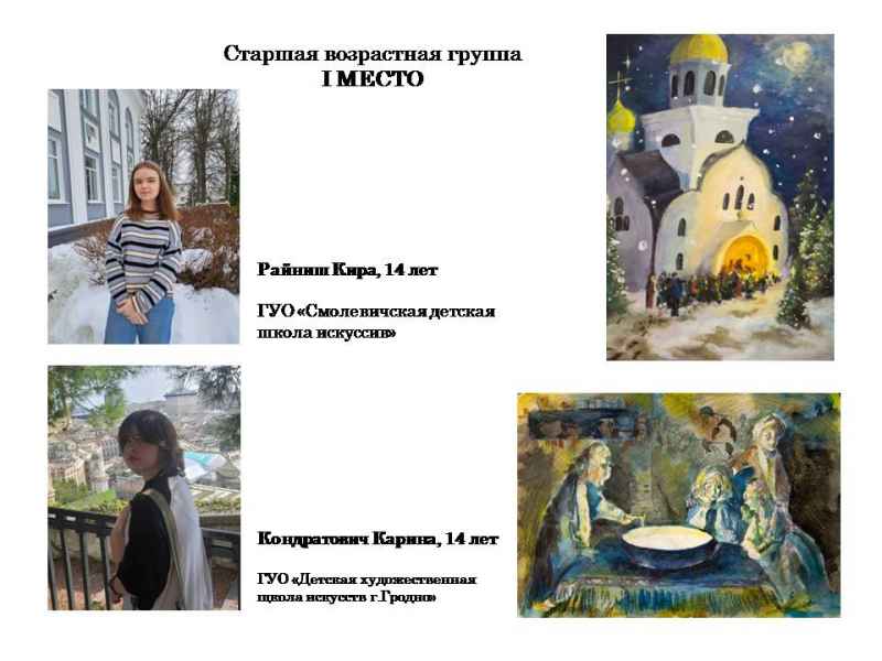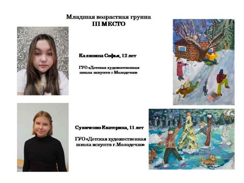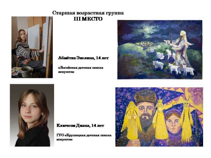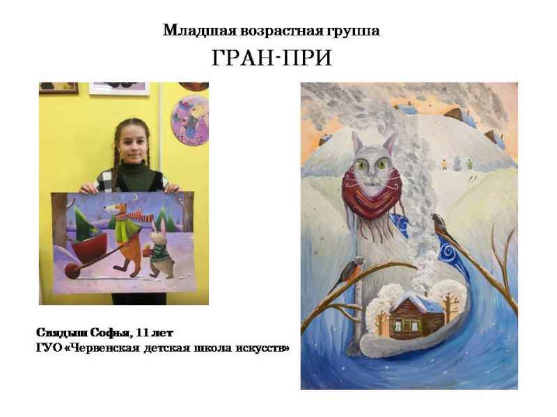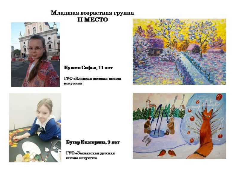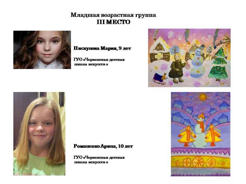 Свядыш Соф’я, навучэнка Чэрвеньскай дзіцячай школы мастацтваў (малодшая група) і Фаміна Сафія, навучэнка дзіцячай мастацкай школы г.Віцебска (старэйшая група).