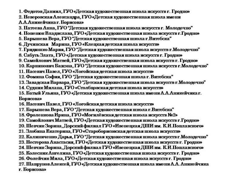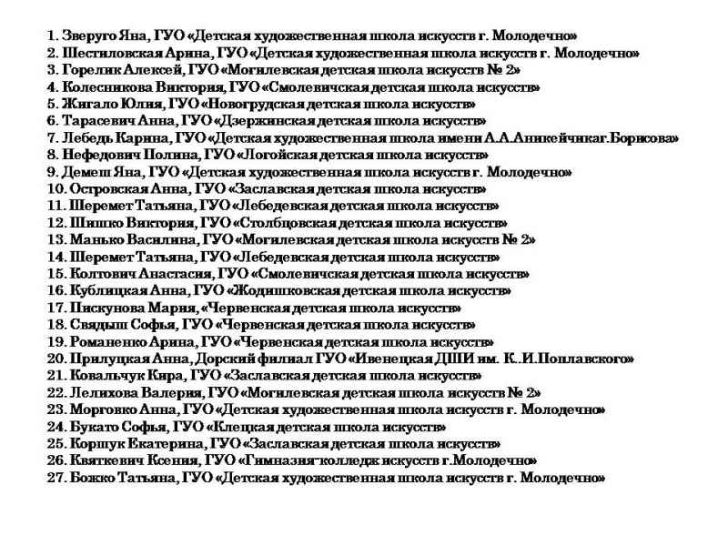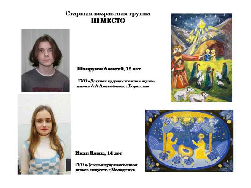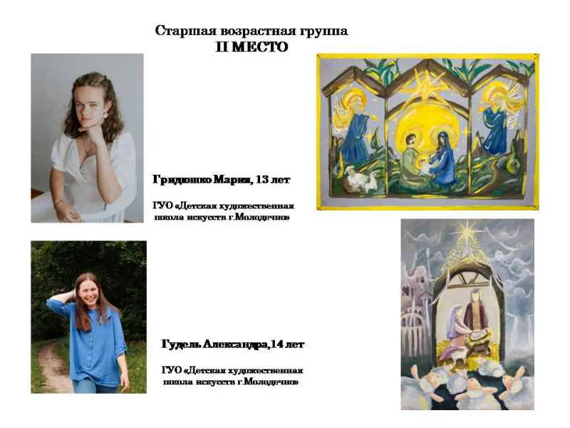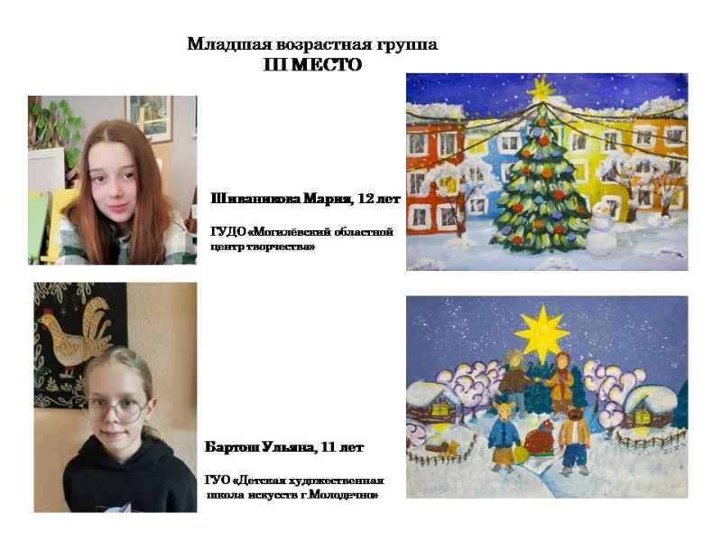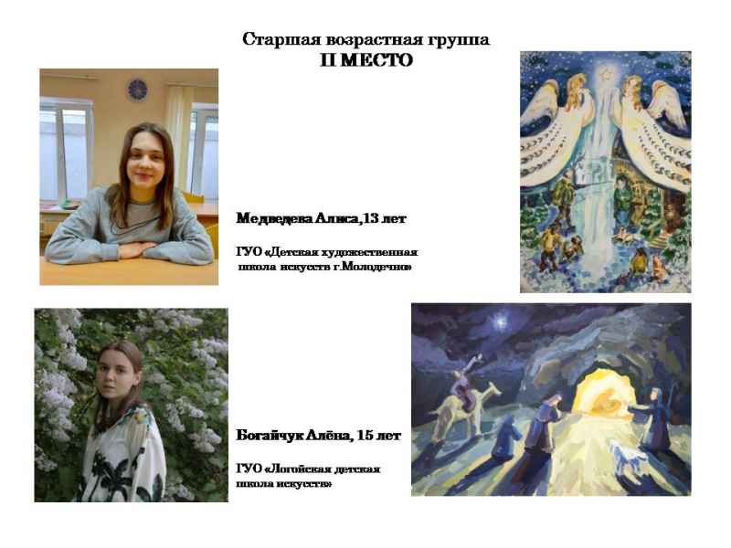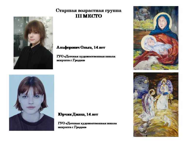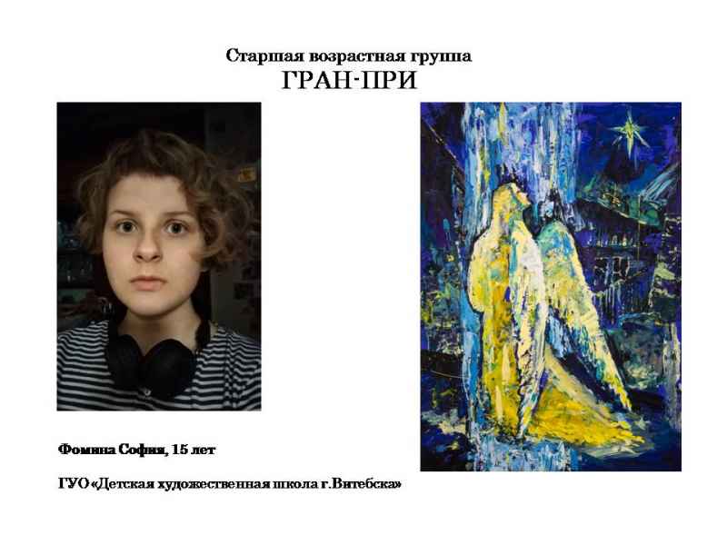 Свядыш Соф’я, навучэнка Чэрвеньскай дзіцячай школы мастацтваў (малодшая група) і Фаміна Сафія, навучэнка дзіцячай мастацкай школы г.Віцебска (старэйшая група).