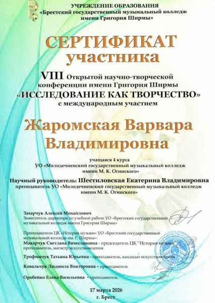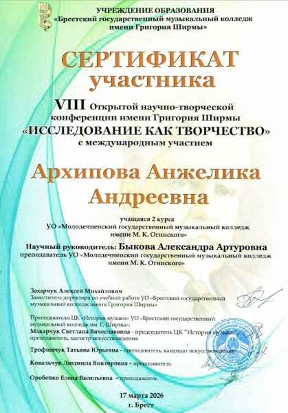 концерт учащихся по специальности «Фортепианное исполнительство» МГМК им.М.К.Огинского в ГУО «Березинская детская школа искусств»