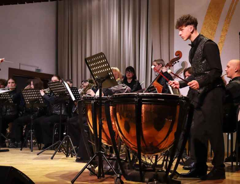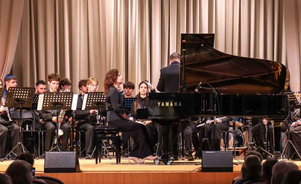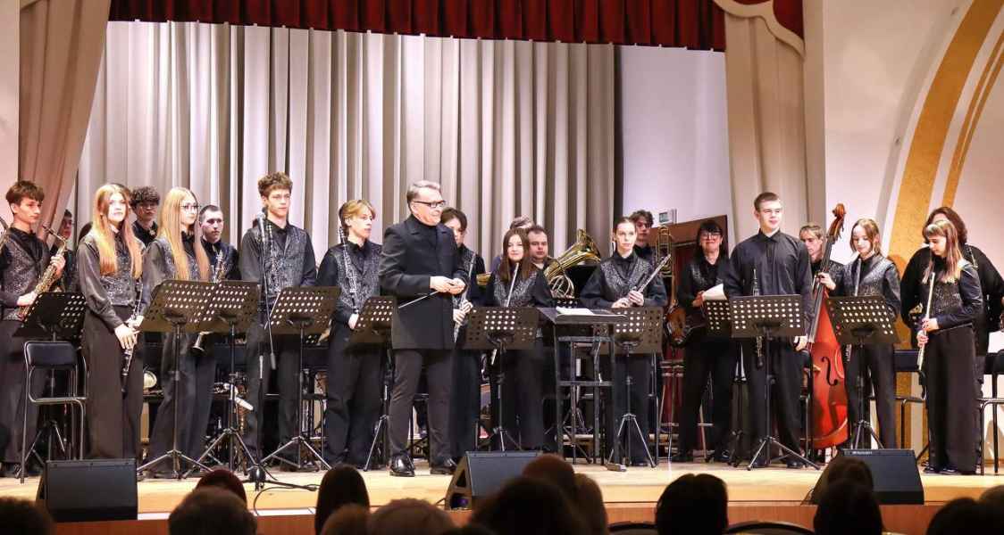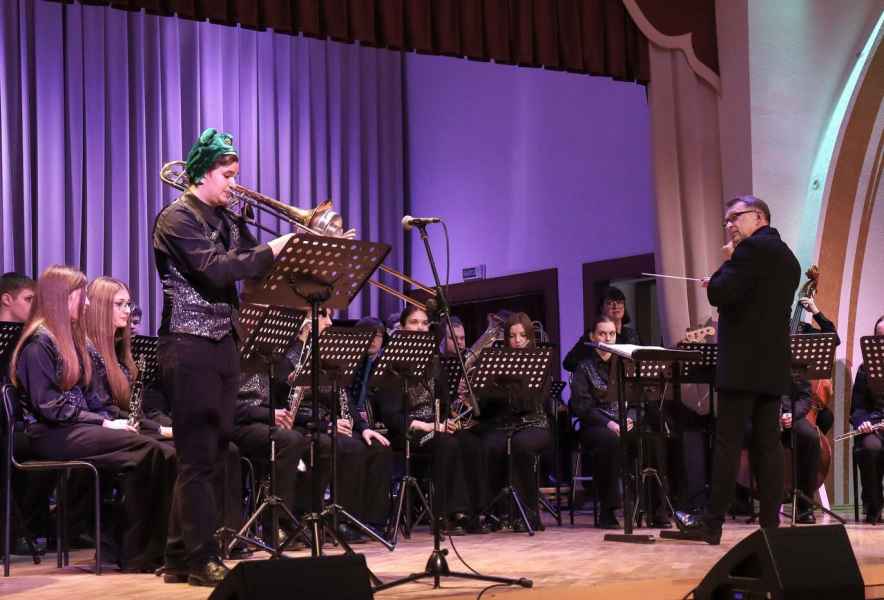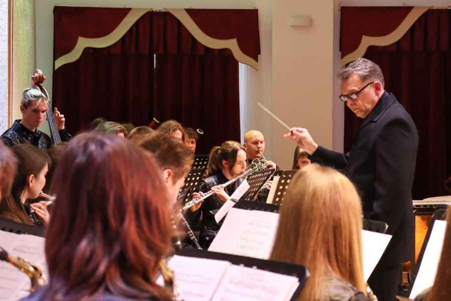 15 апреля в рамках недели цикловой комиссии «Оркестровые духовые и ударные инструменты» состоялся отчётный концерт духового оркестра Молодечненского государственного музыкального колледжа им. М.К.Огинского. В этот раз коллектив подготовил программу, где в сопровождении оркестра выступили солисты–инструменталисты: Егор Туровец - тромбон, Антон Мошко - труба, Никита Луцкий - литавры, Дарья Дуйнова - флейта, Павел Щуцкий - саксофон, Мария Ифтоди - фортепиано. Кульминацией концерта стало исполнение преподавателем колледжа Марией Ифтоди и оркестром «Рапсодии в блюзовых тонах» Джорджа Гершвина. Браво и спасибо музыкантам за великолепный концерт, высокое исполнительское мастерство и яркие впечатления!
