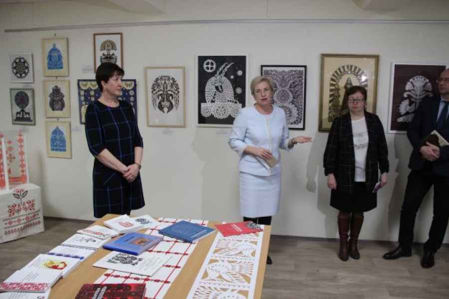 З экспазіцыяй прысутных знаёміла старшыня камісіі «Дэкаратыўна-прыкладное мастацтва» Людміла Валковіч-Борыс.