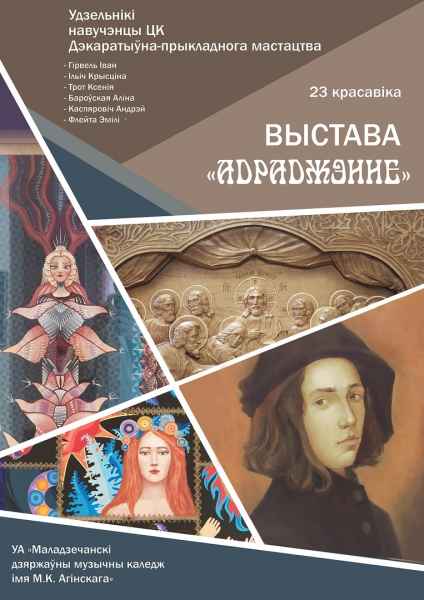 Заключным мерапрыемствам тыдня стала адкрыццё выставы “Адраджэнне” , якое праходзіла ў выставачнай зале Маладзечанскага музычнага каледжа імя М.К.Агінскага.У выставе прынялі ўдзел навучэнцы 2-4 курсаў цыклавой камісіі Гірвель Іван, Ільіч Крысціна, Флейта Эмілі, Бароўская Аліна, Трот Ксенія і Каспяровіч Андрэй. Навучэнцы прадставілі свае творчыя і вучэбныя работы па жывапісе, кампазіцыі і разьбе па дрэве.