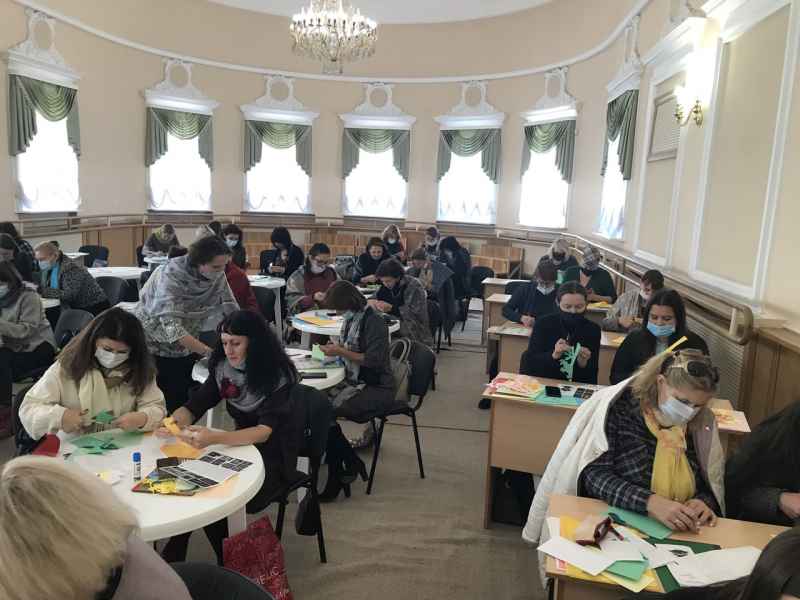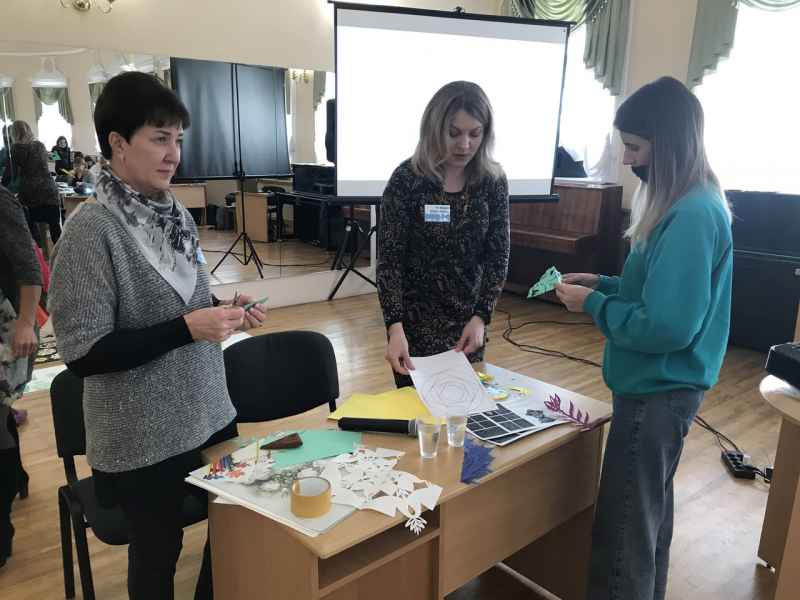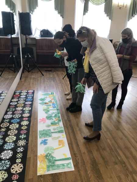 Выкладчыкі Валковіч-Борыс Л.М. і Чырвонцава Л.Л. пазнаёмілі педагогаў дадатковай адукацыі, удзельнікаў мерапрыемства, з арнаментальнай выцінанкай і прыёмамі стылізацыі ў гэтым відзе дэкаратыўна-прыкладнога мастацтва. Падчас творчага выразання была створана агульная кампазіцыя «Чароўны лес».