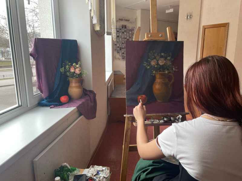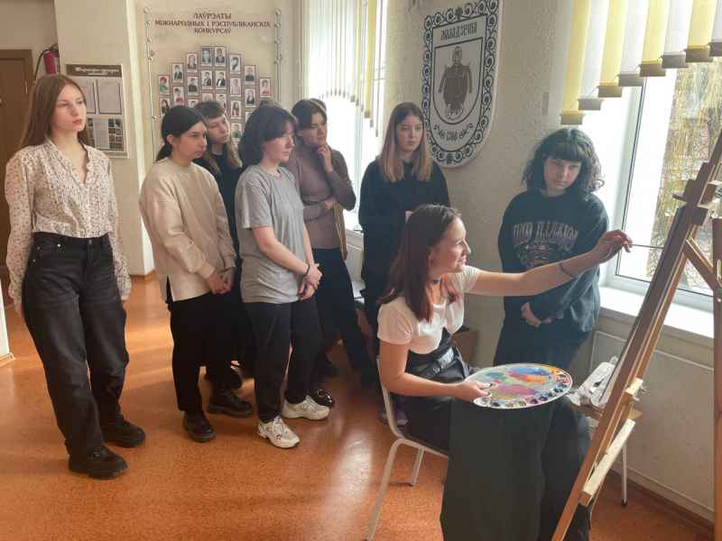 Распачаўся тыдзень 14 сакавіка з майстар-класа па жывапісу, які правяла навучэнка 2 курса Жаўток Соф’я пад кіраўніцтвам выкладчыка Дзмітрыя Святаслававіча Сакалоўскага. У фае каледжа любы жадаючы на працягу 2 гадзін мог паназіраць за працэсам стварэння эцюда нацюрморта.