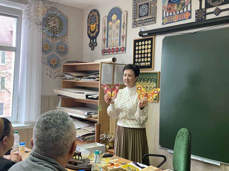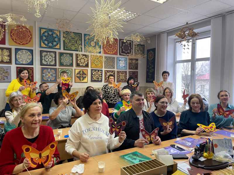 19 сакавіка выкладчыкі цыклавой камісіі, народныя майстры Рэспублікі Беларусь Людміла Валковіч-Борыс і Лізавета Чырвонцава правялі майстар-класы па дэкаратыўна-прыкладному мастацтву ў рамках творчай стажыроўкі кіраўнікоў замежных беларускіх непрафесійных калектываў мастацкай творчасці і кіраўнікоў грамадскіх аб’яднанняў беларусаў замежжа. Удзельнікі стажыроўкі мелі магчымасць пазнаёміцца з такімі відамі дэкаратыўнага мастацтва як выцінанка і аплікацыя саломкай, а таксама яны не толькі пабачылі работы нашых навучэнцаў у тэхніцы эксперыментальнага тэкстылю, але і самі паспрабавалі зрабіць матылькоў у гэтай тэхніцы. Акрамя майстар-класаў для ўдзельнікаў стажыроўкі была праведзена экскурсія ў мастацкую галерэю каледжа. Шмат уражанняў, эмоцый і набыццё ведаў …