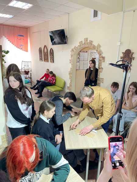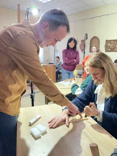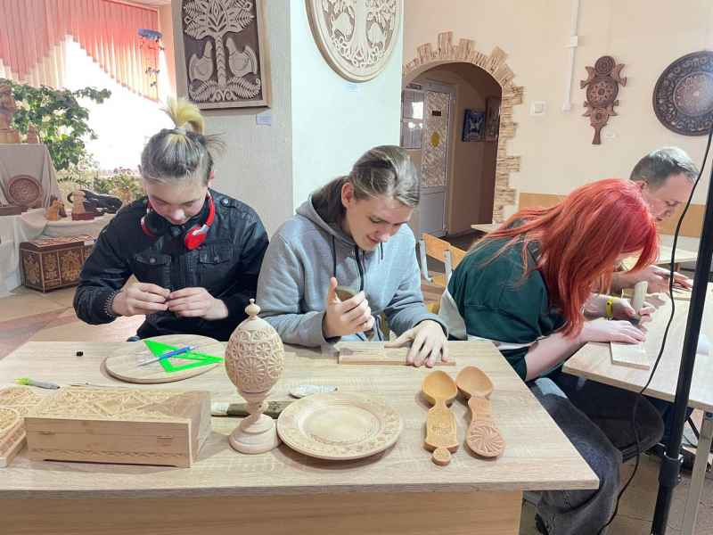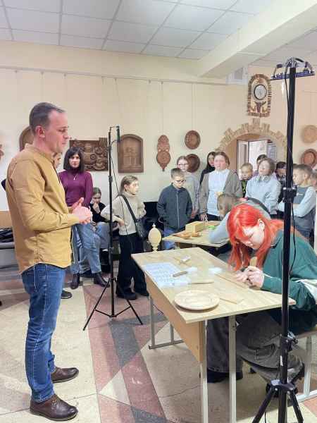 Акрамя выставы, ў рамках профарыентацыйнай работы 7 лютага для вучняў мастацкай школы быў праведзены майстар-клас, на якім яны мелі магчымасць не толькі пазнаёміцца з тэхнікай разьбы па дрэве, паназіраць, як лоўка атрымоўваецца рэзаць геаметрычныя выявы навучэнцам каледжа, але і самім паспрабаваць выразаць асобныя элементы.