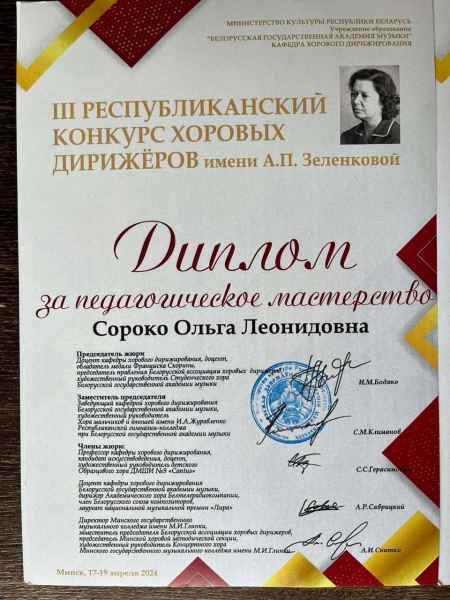 Также Сороко Ольга Леонидовна отмечена дипломом за педагогическое мастерство. Желаем вдохновения, новых побед и творческих высот!