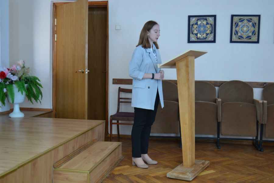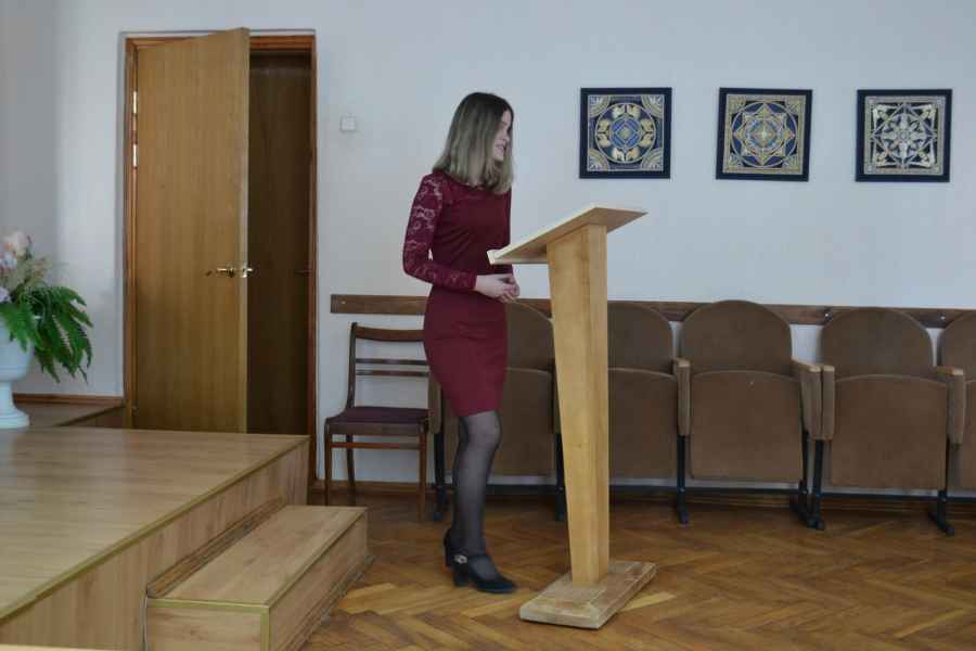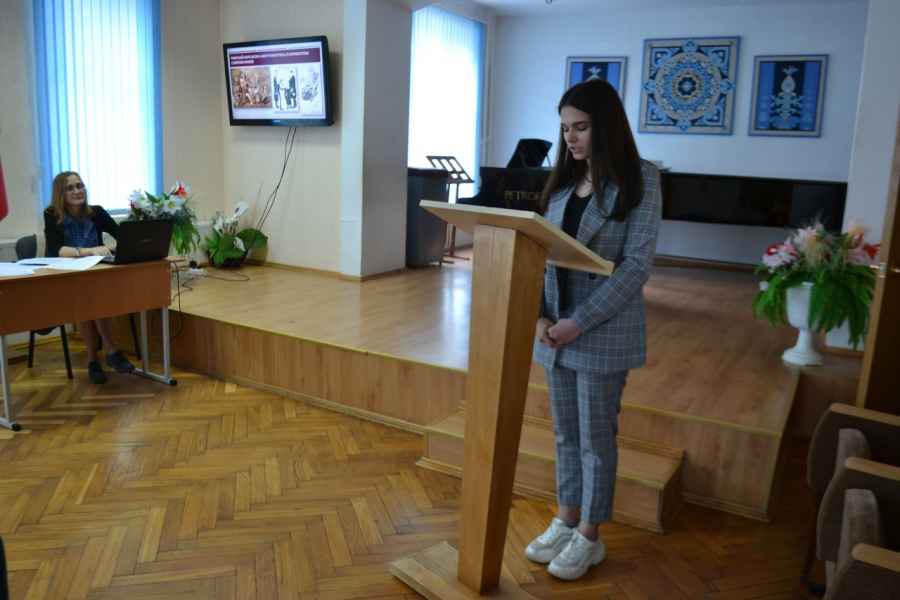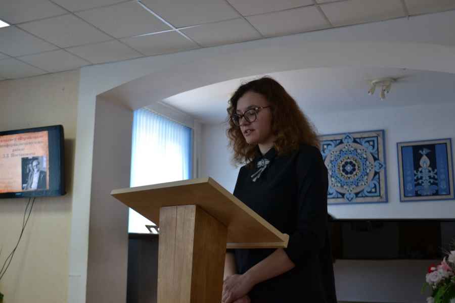 «Раешную» тему продолжил доклад учащейся II курса Анастасии Машко «“Реализм” и “формализм” “Антиформалистического райка” Д.Д. Шостаковича» (научный руководитель – Минич Анастасия Вячеславовна). Анастасия Машко в своем докладе рассказала о замысле малоизвестного произведения композитора, обличающего проводимые по протоколы идеологические собрания 1930-х – 1940-х годов, а также представила основных его персонажей, - «тов. Опостылова», «тов. Единицына», «тов. Двойкина» и «тов. Тройкина».