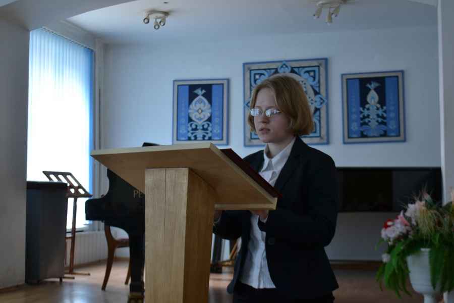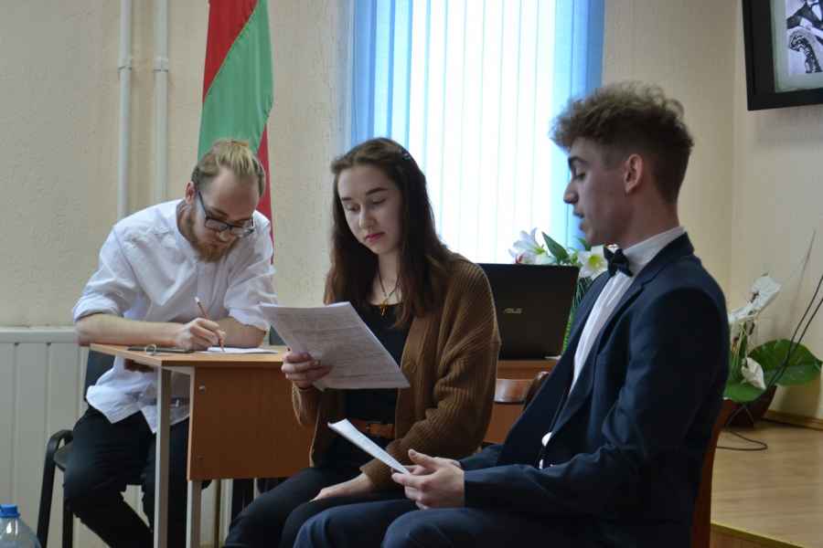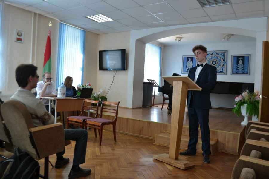 Другая сторона музыкального юмора, связанная с развитием традиций ярмарочных карнавальных действ, лубочного театра, в музыке композиторов «Могучей кучки», была представлена в докладах «Юмор и смех оперы “Ночь перед Рождеством” Н.А. Римского-Корсакова» учащейся II курса Надежды Володько и «Традиции русской музыкальной сатиры в памфлете М.П. Мусоргского “Раек”» учащихся III курса, - Александра Ключника, Романа Галина и Яны Сенько (научный руководитель – Минич Анастасия Вячеславовна, преподаватель ЦК «Музыковедение», магистр искусствоведения). О музыкальном воплощении в «были-колядке» Н.А. Римского-Корсакова «Ночь перед Рождеством» карнавально-ярмарочной атмосферы, композиционных особенностей повести Н.В. Гоголя, передаче в музыке композитора характерных гоголевских «звуковых жестов» (выкриков, вздохов, кряхтения, смеха) рассказала Надежда Володько. Учащиеся III курса, - Александр Ключник, Роман Галин, Яна Сенько, - передали неповторимую ироничную манеру общения композиторов «Могучей кучки», показали несколько эпизодов из жизни балакиревского кружка, которые легли в основу музыкального памфлета М.П. Мусоргского «Раек». В духе старинных ярмарочных представлений каждый из участников примерил «маску» известных исторических лиц, - М.А. Балакирева (А. Ключник), М.П. Мусоргского (Р. Галин), В.В. Стасова (Я. Сенько).