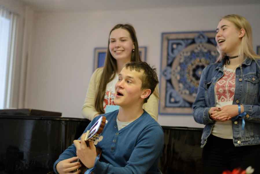 Яшчэ на пачатку імпрэзы свае паэтычныя здольнасці прадэманстраваў навучэнец 3 курса Дзмітрый Ціхановіч з аўтарскім вершам “Наведвайце, дзеці, старонку родную часцей”, а вядомую песню “Простыя словы”, у выкананні 1-га курса, спявалі ўсе прысутныя.