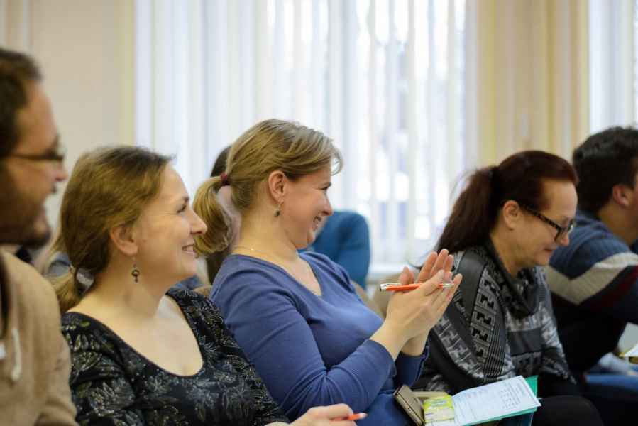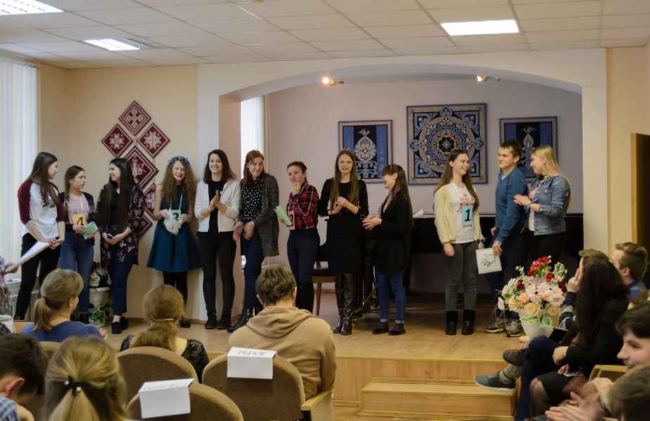 У 15-30 малы зал аб’яднаў усіх жадаючых на “Беларускамоўны батл” паміж навучэнцамі 2-га курса, сярод якіх былі сфарміраваны 4 каманды: “Блакітныя гузікі”, “Беларусачкі”, “Кветачкі-васілёчкі” і “Маладыя каласы”.