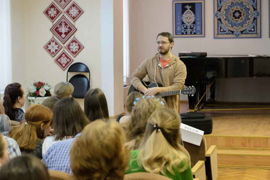 Напрыканцы сустрэчы для выкладчыкаў і навучэнцаў каледжа выступіў беларускі паэт і музыка Міхал Бараноўскі.