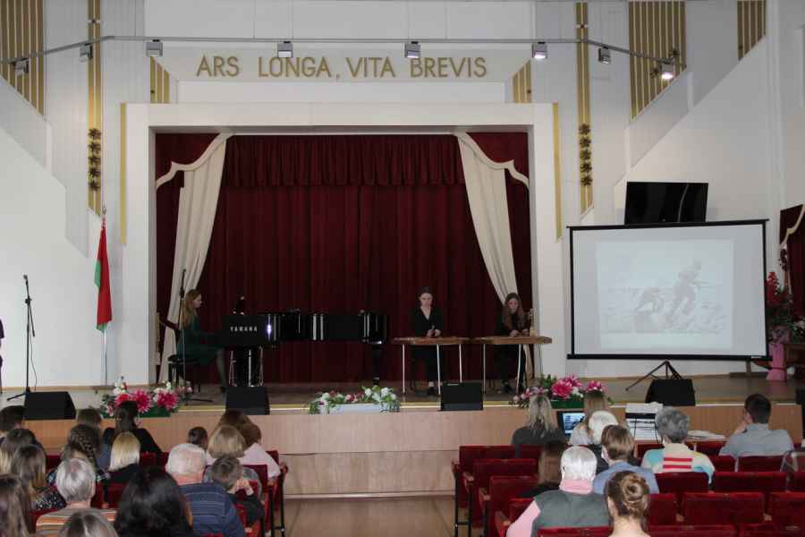 А как учащиеся читали стихи о войне! С какой болью прозвучали строки о начале войны, разделившей мир на «до» и «после» от Софии Гриневич и Никиты Гисича. Трогательно до слёз читала стихотворение Б. Окуджавы «До свидания, мальчики» Ангелина Щербо. На высокой патриотической ноте прозвучало стихотворение П.Панченко «Герой», прочитанное Александрой Новиковой. К восприятию личной трагедии легендарного командира партизанской бригады батьки Миная зрителей подготовило выступление цимбалисток Алины Мельник и Алеси Ярощук с пьесой композитора Д.Смольского «Протяжная». «Баладу аб чатырох заложнiках» А. Кулешова Лолита Сенько прочитала с таким пониманием трагичности произошедшего, что потрясла весь зал.